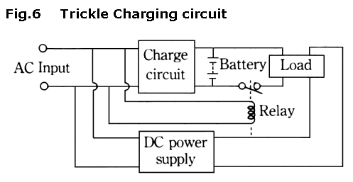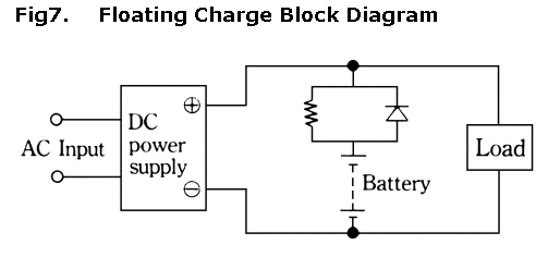 在浮充方式中,电池以很小的在C/30到C/20之间电流进行充电,并保持满充状态备用。浮充方式用在火警报警和应急灯上面。图6是浮充方式充电的一个例子。