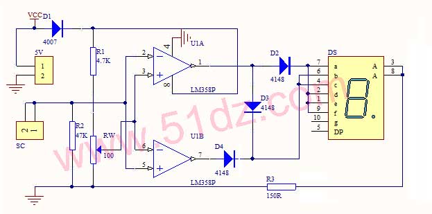 该逻辑测试笔的制作套件,主要用于熟透逻介绍一款用一片LM358来控制一位数码管的显示的逻辑笔,LM358内部包括有两个独立的、高增益、内部频率补偿的双运算放大器,  适合于电源电压范围很宽的单电源使用,也适用于双电源工作模式,在推荐的工  作条件下,电源电流与电源电压无关。它的使用范围包括传感放大器、直流增益  模组,音频放大器、工业控制、DC增益部件和其他所有可用单电源供电的使用运算放大器的场合。外围电路简单,制作容易。