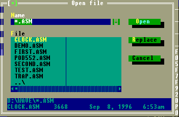 File->Open,出现对话框后,在Name处输入一个文件名(见图2),如果是下面列表中已存在的,则打开这个文件,如果不存在这个文件,则新建一个文件(见图3